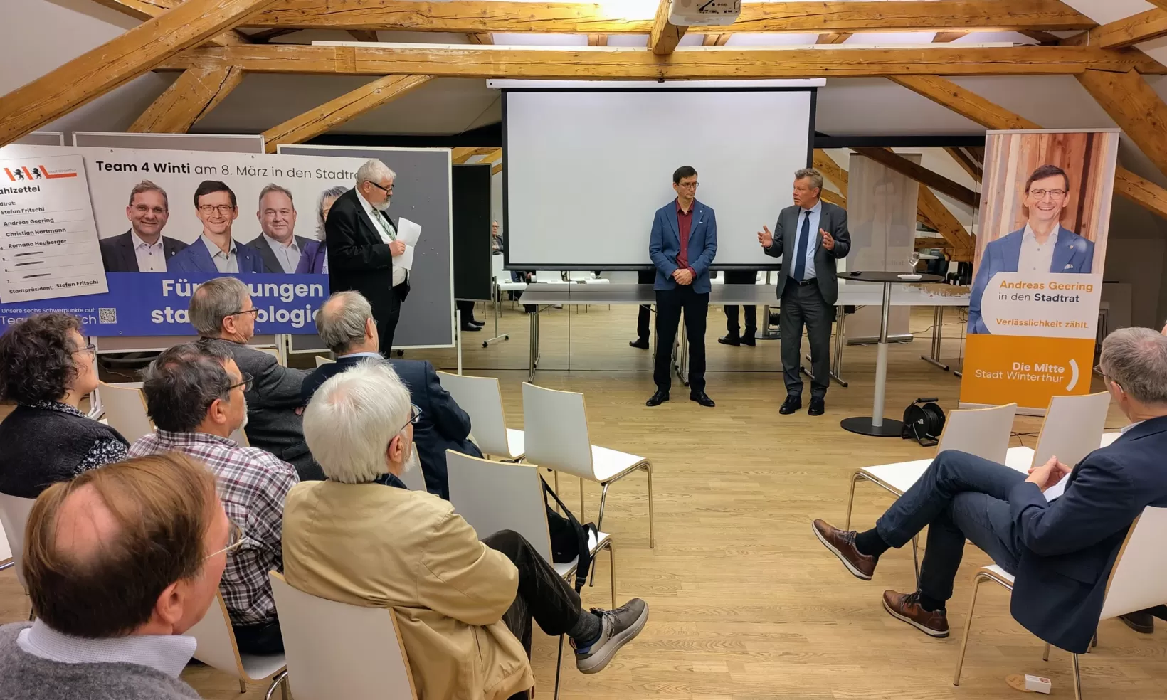 Mit Stadtpräsident Michael Künzle als Moderator, Nationalrat Reto Nause als Referent und Stadtratskandidat Andreas Geering führte die Mitte Stadt Winterthur am 27. Januar 2026 im Restaurant National ein Anlass zum Thema «Sicherheit in Städten» durch. Knapp 30 interessierte Personen aus Winterthur nahmen daran teil. Im Zentrum der Veranstaltung stand die Frage, wie Städte ihre Sicherheit stärken können, ohne die Freiheit der Bevölkerung einzuschränken.