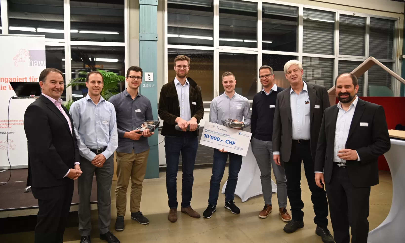 Die Jury durfte 3 herausragende Arbeiten, welche alle preiswürdig waren, bewerten. Gewinnen konnte leider nur ein Kandidat. Die Laudatio wurde von Prof. Dr. Dirk Wilhelm, Direktor an der ZHAW School of Engineering (SoE), gehalten. Er unterstrich, dass alle Arbeiten wissenschaftlich sehr gut und für die Praxis relevant waren. Zudem hatten alle einen direkten Bezug zu Winterthur. Das mit CHF 10'000 honorierte Siegerprojekt von Chris Beyer wurde am Zentrum für Produkt- und Prozessentwicklung (ZPP) an der ZHAW SoE (bei Frank Huber und Anton Höller) eingereicht. Die Projekte von Niclas Simmler (HSLU) und Carl Philipp Biagosch (ETH) hatten entweder einen Betreuer der hiesigen Hochschule oder einen lokal verankerten Praxispartner.