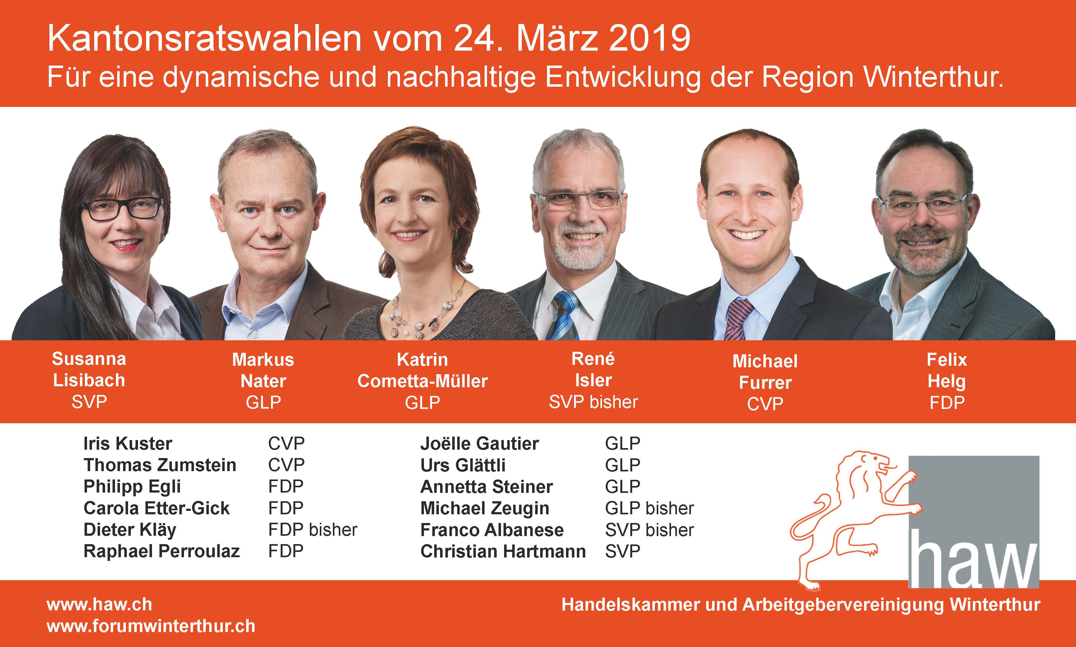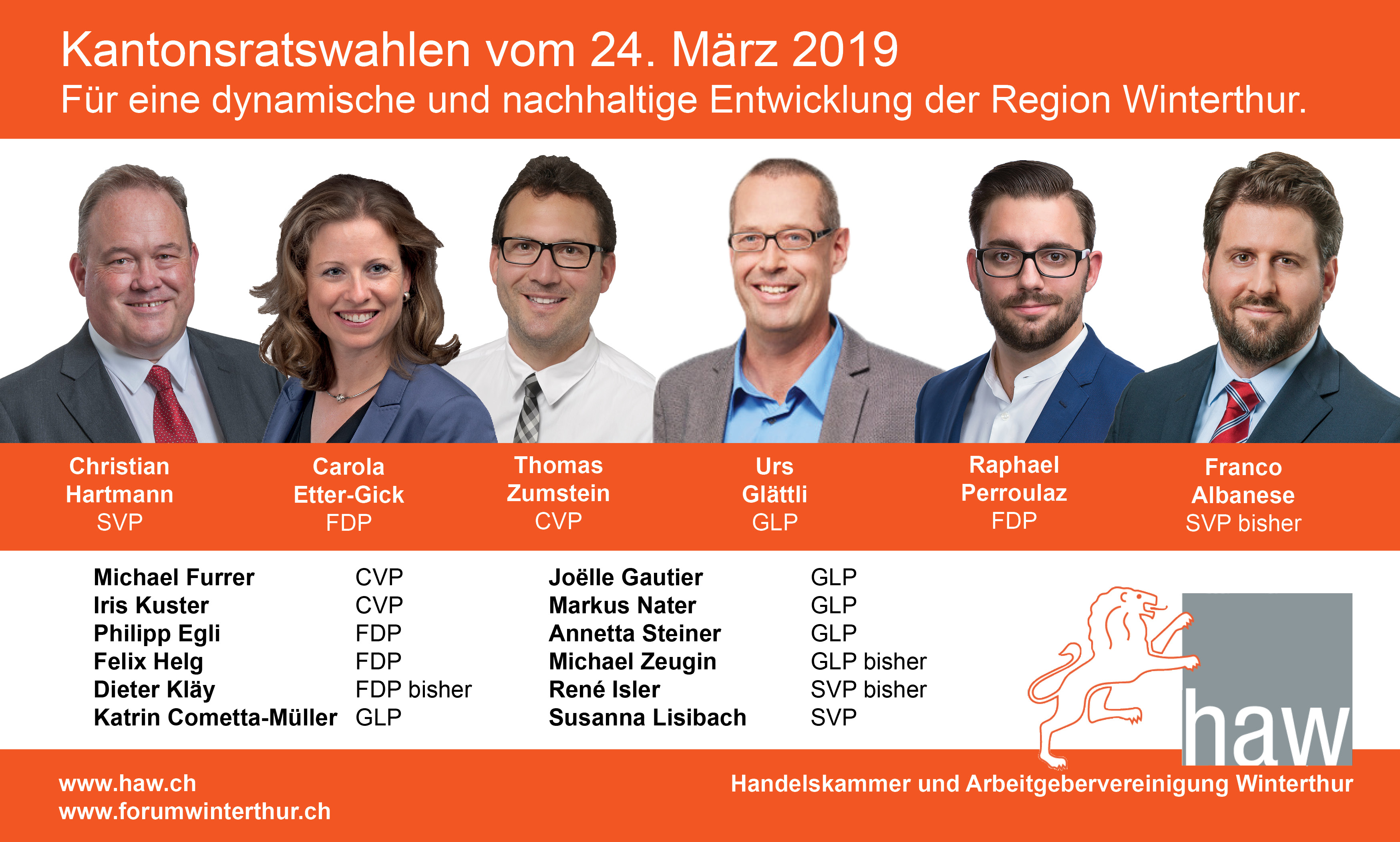 Wir sind überzeugt, dass sich die folgenden Kandidatinnen und Kandidaten für diese Ziele im Kantonsrat zu Gunsten von Stadt und Region Winterthur einsetzen werden:
