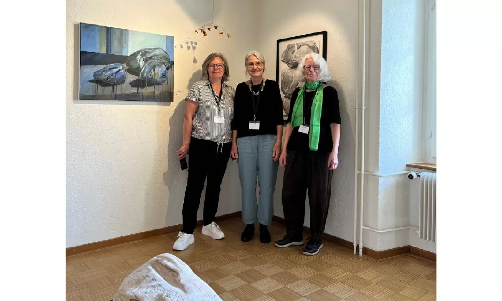 Ende April wurde in Diessenhofen die Ausstellung «RHEINREICH steinreich» mit Werken von Iris Dressler und Brigitte Enz Woodtli eröffnet. Mit den beiden Künstlerinnen aus Marthalen schlägt das Museum kunst + wissen eine Brücke zum Zürcher Weinland, wo der Rhein streckenweise – von Dachsen über Rheinau bis Ellikon am Rhein – die natürliche Landesgrenze bildet. Wer in Diessenhofen vom Oberen Amtshaus, dem Museumsgebäude, nordwärts aus dem Fenster schaut, erblickt ebenfalls den Rhein und deutsches Territorium.
