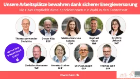 Am 12. Februar 2023 wir das kantonale Parlament und die Regierung neu gewählt. Die Kampagne geht in die entscheidende Phase. Die HAW hat im Vorfeld der Wahlen Empfehlungen abgegeben. Im vorliegenden Beitrag werden auch Video-Beiträge von KandidatInnen zusammengefasst. Diese sind individuell gestaltet und geben kurzweilig Aufschluss, wofür diese einstehen. Klicken Sie sich durch!
