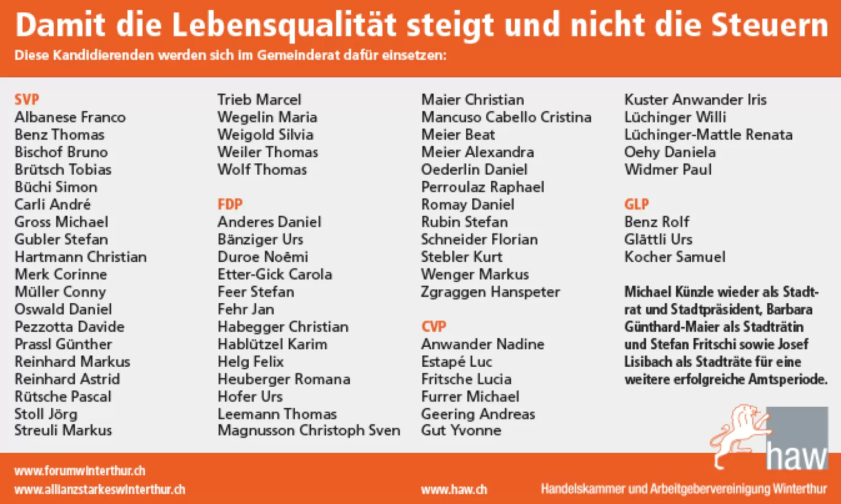 Wahlempfehlung der Handelskammer und Arbeitgebervereinigung Winterthur